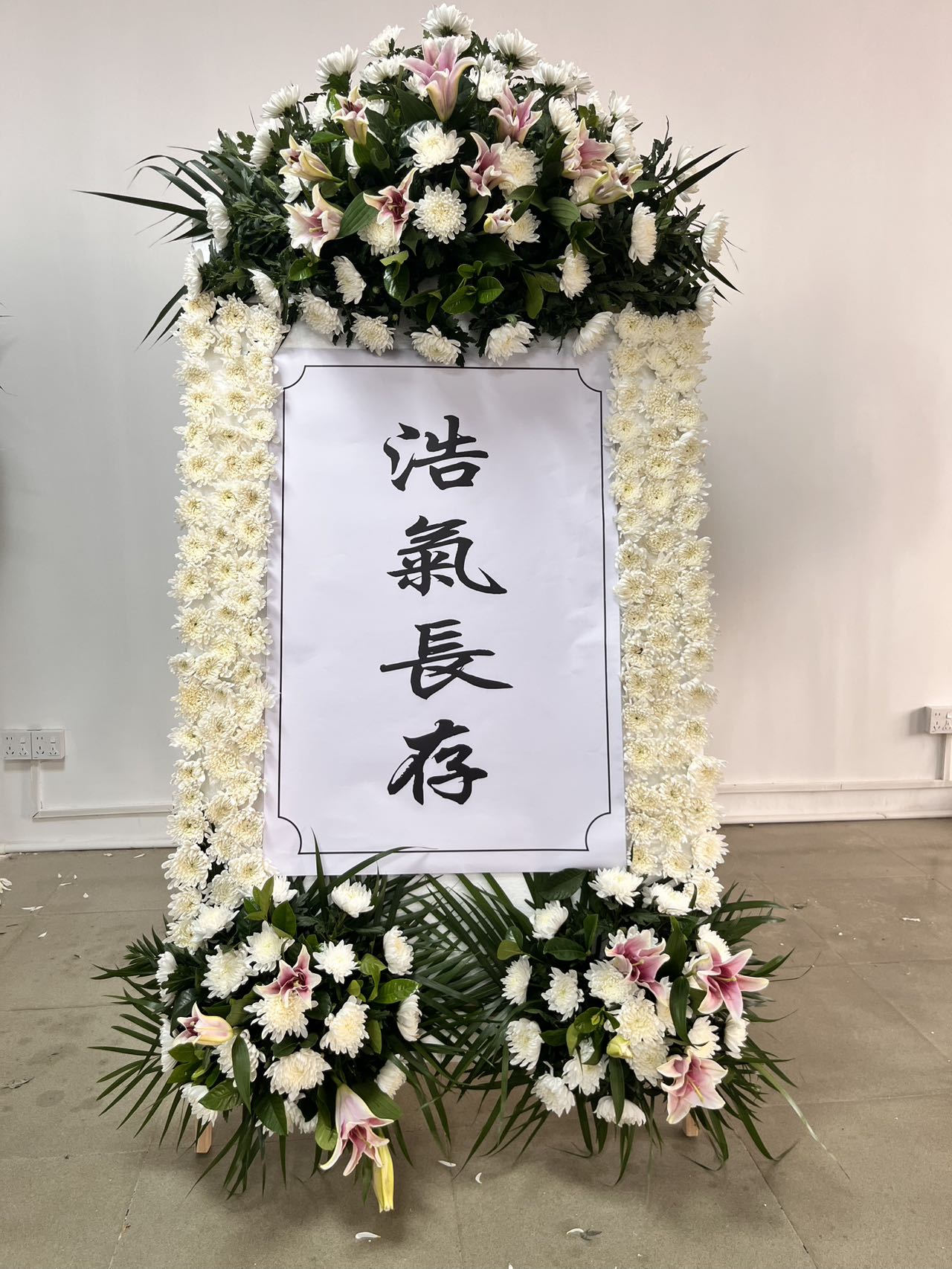本款殡葬花圈以“庄重缅怀”为核心设计理念,选用天然竹竿手工编织基底,搭配清晨直采的白色系鲜花,打造兼具质感与情感温度的追思载体。花圈主体采用纯洁白色为主色调,精选白色菊花、玫瑰、百合、香石竹等寓意圣洁的花材,辅以文竹、松柏枝等常绿枝叶点缀,象征生命的永恒与敬意。